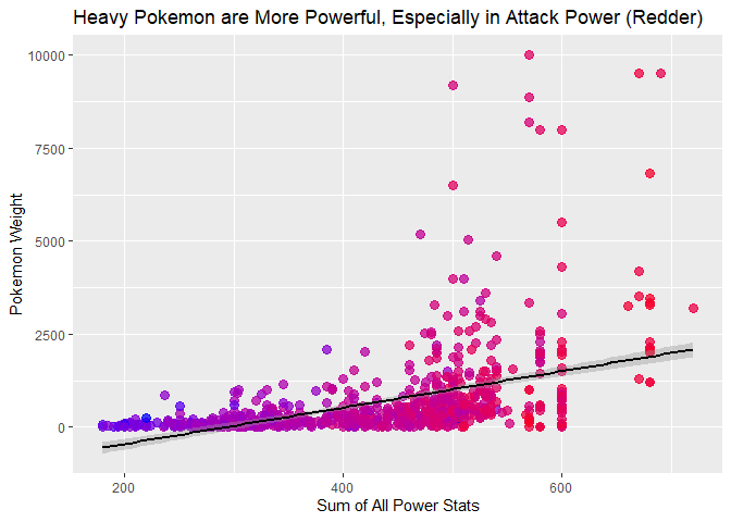 This Pokemon Vignette uses several built in functions and tidyverse packages to expose the increasing amount of sadness and heavier weights occurring in the Pokemon Universe over time with visuals, graphs, and tables. This is cutting edge research into newly arising problems in pokemon culture. Future research questions include: * Is this increase in sadness a response to colonial expansion to these new areas in new generations? Or are we just discovering more diverse colony types in harsher parts of the world? * Are these pokemon who are heavy and less happy found in more rural areas? * Where are the best places to put pokemon intervention centers.