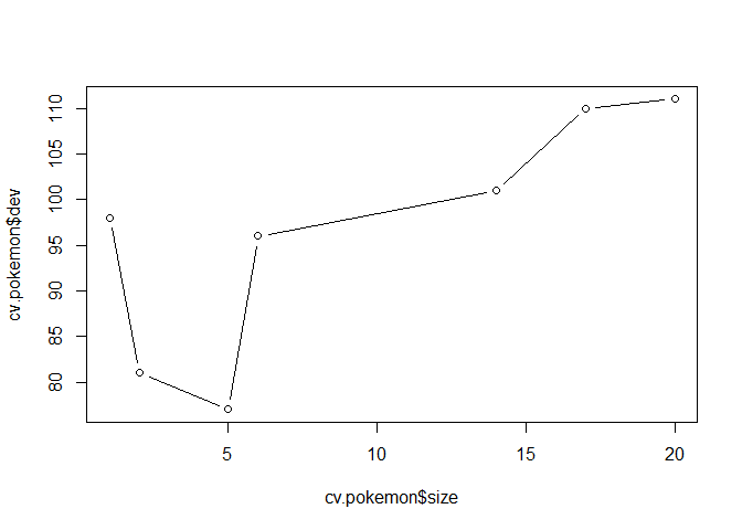 prune.pokemon=prune.misclass(tree.pokemon,best=5)