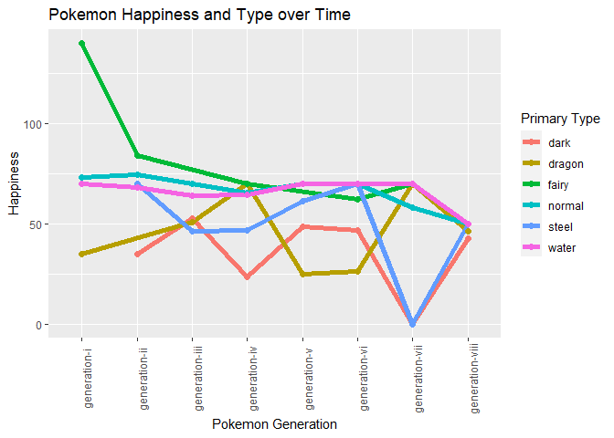 plot4<-ggplot(data=graphBreak, aes(x=pokeGen, y=Happiness, group=pokeType1,